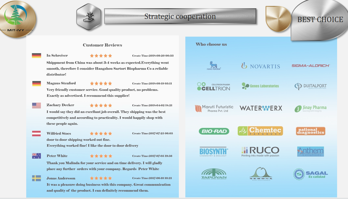 A12: First, our quality control department will strictly check our export products through HPLC, UV, GC, TLC, etc. Our quality control will reduce product quality problems to almost zero. If it is really a quality problem caused by us, we will give you free returns or compensation for your losses.