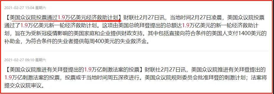 The second important reason for the rising tide is the global central banks’ flood of monetary increases, especially the Federal Reserve’s announcement last year that it would first reduce the federal reserve funds rate to zero and launch a $700 billion QE program, followed by the opening of an unlimited bond purchase mode, that is, every day that week will buy $75 billion of Treasuries and $50 billion of agency home mortgage-backed securities (MBS), while saying that after Yesterday the U.S. House of Representatives passed a $1.9 trillion economic bailout plan on fire, and some of the additional hot money liquidity will inevitably flow into the financial markets, with inflationary expectations of commodity price increases already in play.