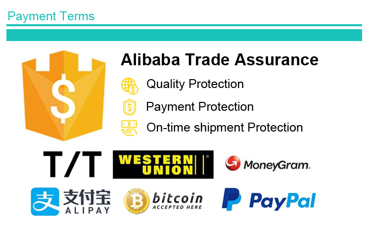 payment methods: L/C, T/T, D/A, D/P, O/A, paypal, western union etc.accept all payment