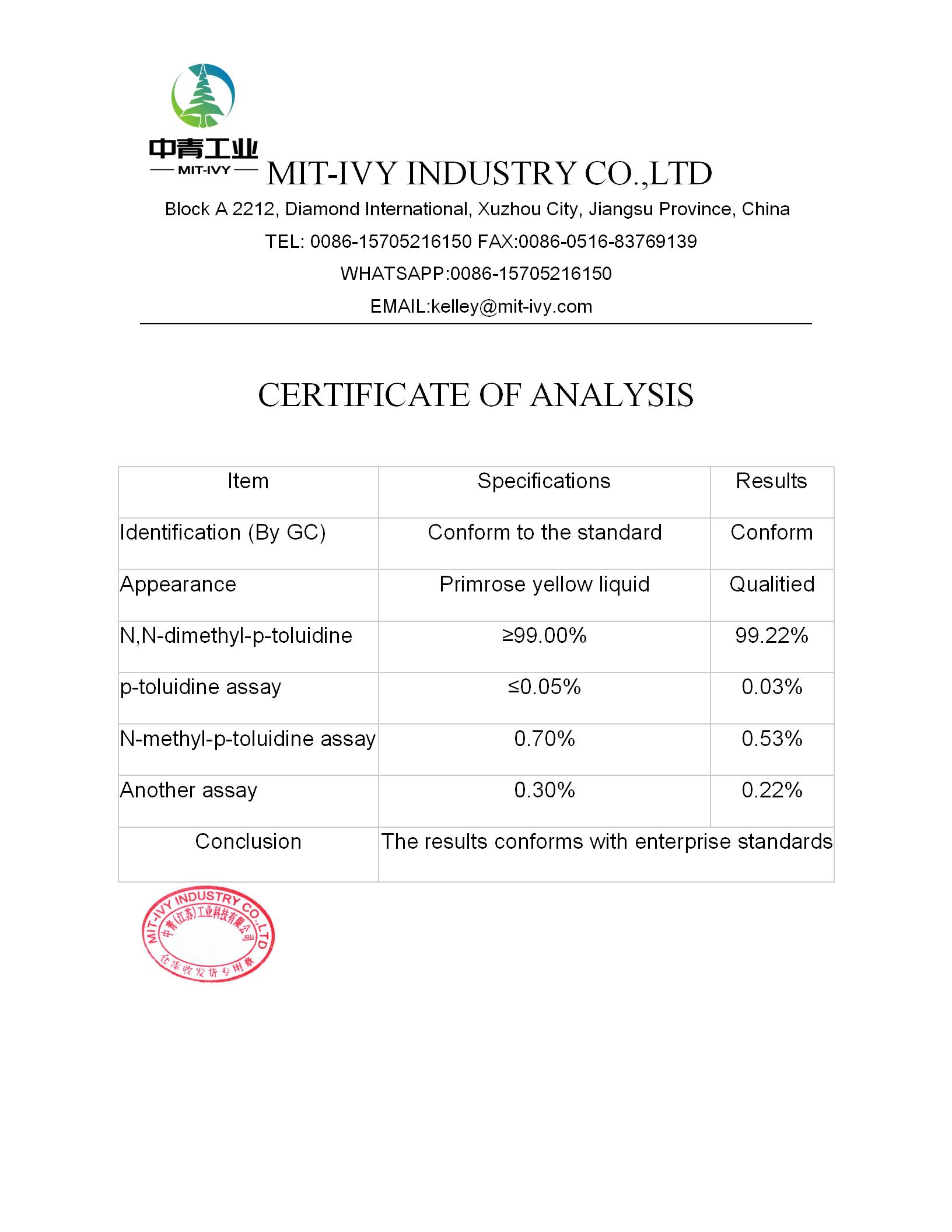 | N,N-diethyl-m-toluidine≤ % : | 0.40 | |