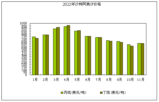 Saudi Aramco will launch CP in November 2022, with propane at US$610/ton, an increase of US$20/ton from the previous month; butane at US$610/ton, an increase of US$50/ton from the previous month. .
