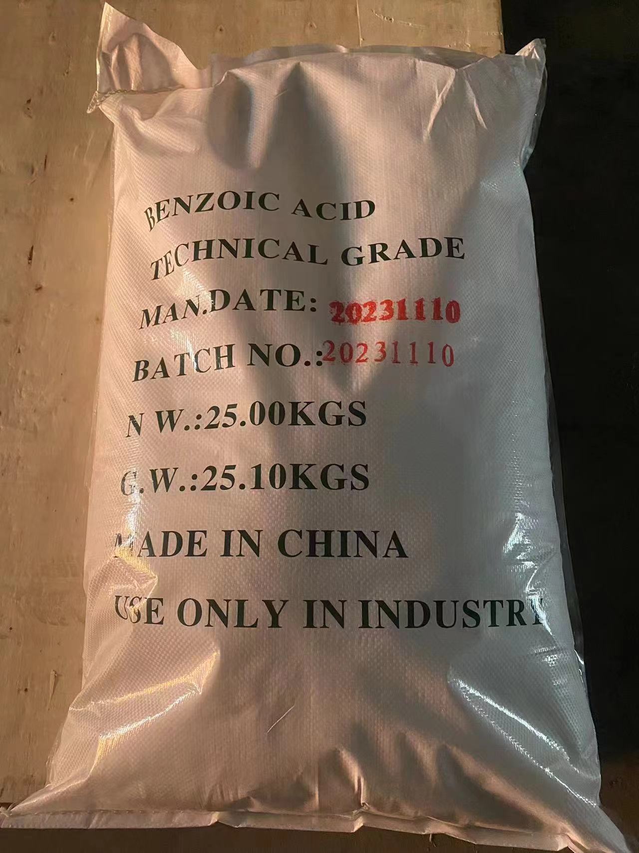 Definition: The chemical formula is C6H5COOH, which is produced by the oxidation of toluene. It is mainly used as a preservative, disinfectant, and also used as a pharmaceutical and chemical intermediate.